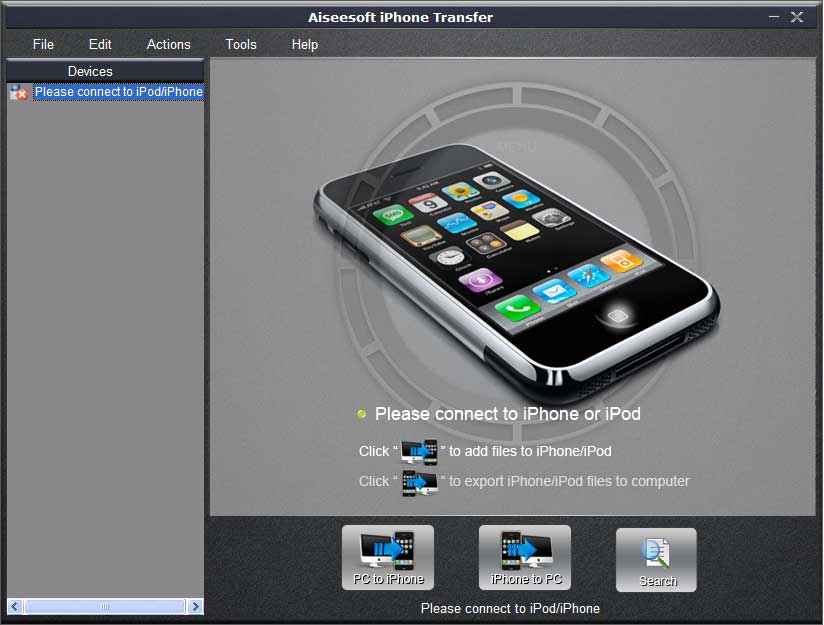 Aiseesoft iPhone Transfer can import video and audio files or folders on PC to iPhone directly, backup files from iPhone to local disc without loss. This iPhone Transfer can transfer all video and audio files or folders accepted by iPhone. These formats include MP4, M4V, MP3, WMV. Strong search function can find files you need easily. Possessed of friendly user-interface, it is easy to operate, even for the new users. Just connect it with your iPhone, all the process can be finished in few clicks.
